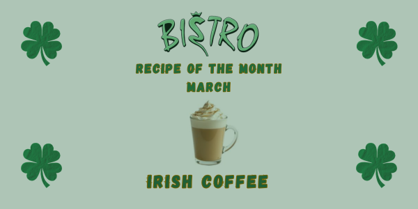 This month, Celebrate St. Patrick’s Day with a warm and classic Irish Coffee!